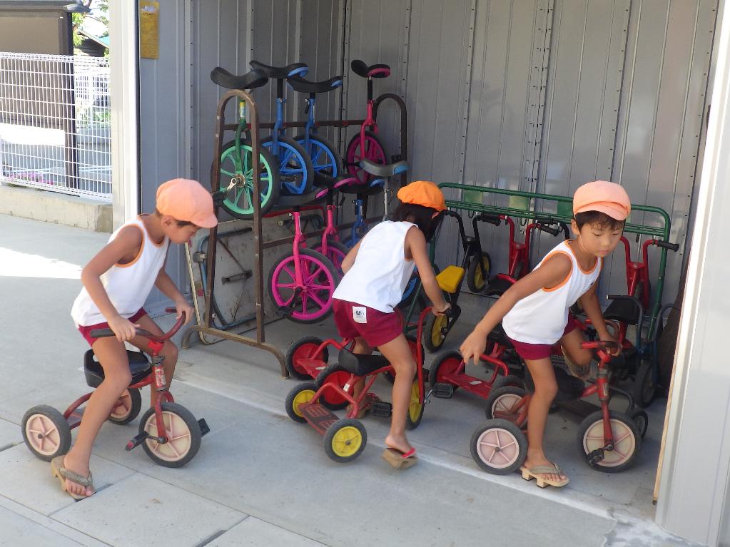 この度、赤い羽根共同募金から助成をいただけることになり、安心で収納しやすい倉庫を備えることができました。「三輪車のステキなお家ができたね」と子どもたちも大喜びです。片付けも楽しみながら、遊具倉庫を大切に利用させていただきます。