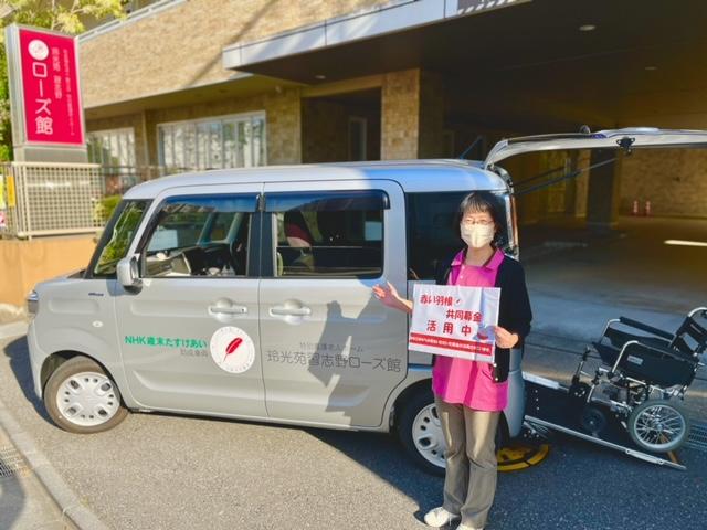 この度NHK歳末たすけあい助成により、ローズ館にスズキの送迎用福祉車両「スペーシア」が仲間入りしました。利用者様もスタッフも新しいクルマに大満足の笑顔です。この度購入させていただいた送迎車両は、介護する上で心強い仲間となります。安全運転をモットーにこれからも大切に運転していきます。共同募金にご協力いただいた皆様に感謝の気持ちを忘れずに、大切に使用させていただきます。