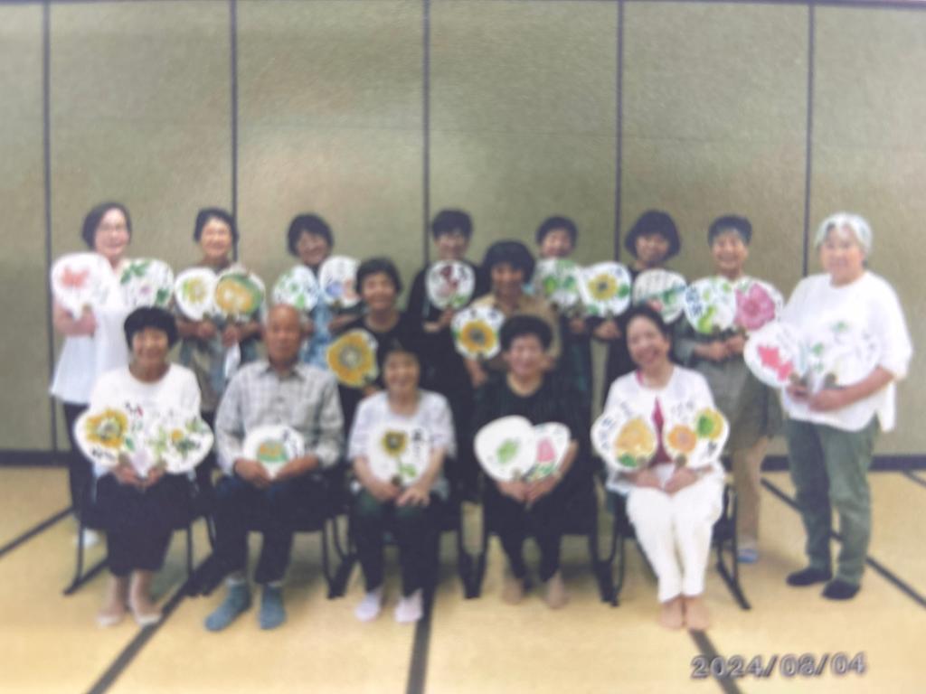 絵手紙を市内の高齢者の給食サービスにあわせて絵手紙を届ける。夏には、高齢者施設にうちわを持って慰問する。市のふくしまつりに参加し、絵手紙体験教室を行う。絵手紙を通じて高齢者との心の交流を図る。