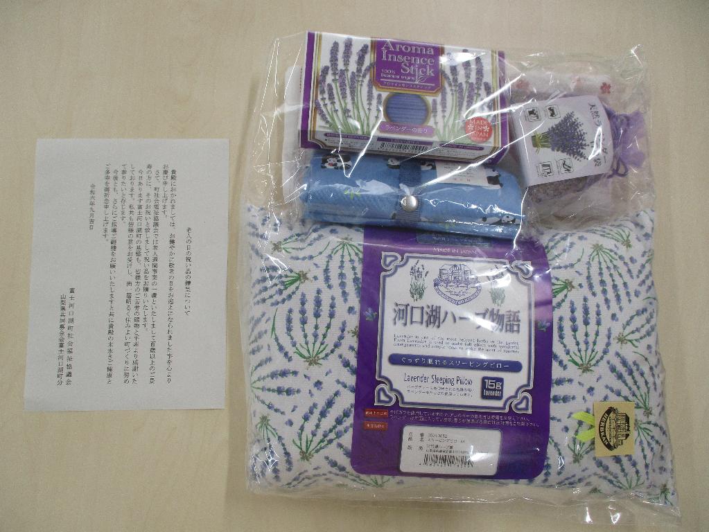 皆さまからの善意のおかげで「敬老の日」の記念に喜寿(77歳)、米寿(88歳)、99歳(白寿)、100歳以上の高齢者に記念品としてバスタオルと地元特産の製品、金婚式の写真を贈呈することができました。