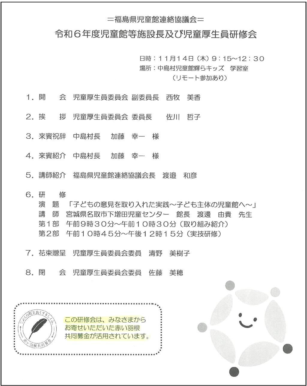| 活動内容の補足事項 | 児童館等施設長・児童厚生員の研修会 |