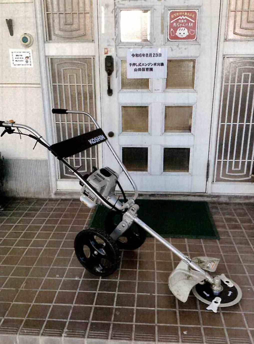 ご寄付を頂き、ありがとうございました。機材を購入したことで、園庭の草刈りを保育士で行うことができ、草が伸びたら直ぐに刈ることが出来るようになり、今まで以上に子どもたちの安全を守ることが出来ました。本当にありがとうございました。これからも大切に使っていきたいと思います。今後ともよろしくお願い致します。