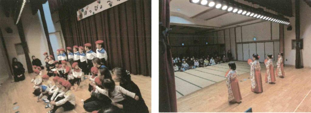 施設等の利用者に園児による訪問活動として、鼓隊や遊戯、歌等を披露する。園児が高齢者との交流を通して、尊厳といたわりの気持ちを育てていく。