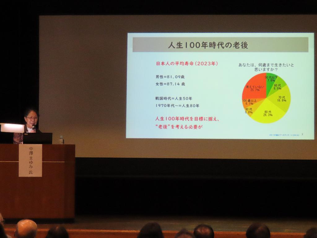 桑名市社会福祉大会を開催し、社会福祉事業の推進と団体の発展・育成に尽力、社会福祉事業資金として多額のご寄付をされた団体及び個人を表彰しました。記念公演では、親の介護をきっかけに在宅ケアや福祉分野への関心を深められ、高齢者の居場所づくり支援を続けておられるノンフィクションライターの中澤まゆみさんにご登壇いただき、現代の独居高齢者が抱える問題や、老後に備える知恵と工夫について市民の皆様に有意義なお話をしていただきました。参加者は前年度を上回り、盛大な大会を開催できました。ありがとうございました。