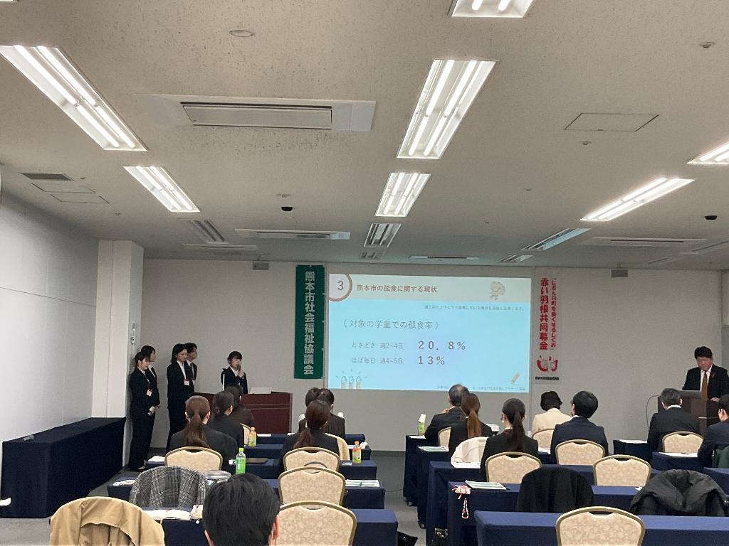 令和6年度は、熊本市内における「こども」の課題にテーマを絞り、令和7年1月18日(土)にホテル熊本テルサにてコンテストを開催し、最優秀賞には「制服バンクを活用した新たな子育て支援」を発表した学生のアイデアが選ばれました。