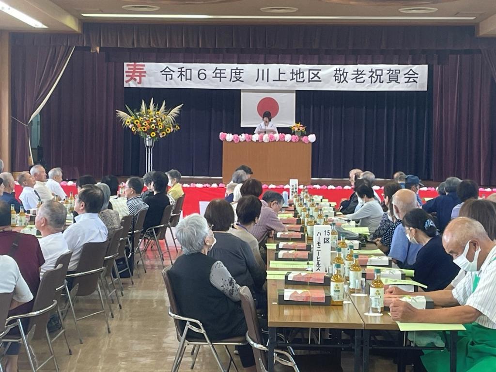 高齢化の進展、地域コミュニティの希薄化が進む中、一人暮らしの高齢者の孤独死や災害など緊急時の高齢者や障がい者などの逃げ遅れが懸念されています。一人暮らしの高齢者、高齢者のみの世帯が引きこもることなく、地域に出て楽しみを見いだすきっかけづくりとして、令和6年度、川上地区では5月に「お楽しみ昼食会」、9月に「敬老祝賀会」を開催しました。皆様の温かいご支援をこれらの事業に活用させていただきました。今後とも地区の高齢者がいつまでもお元気で楽しく暮らしていけるよう取り組んでまいります。本当にありがとうございました。