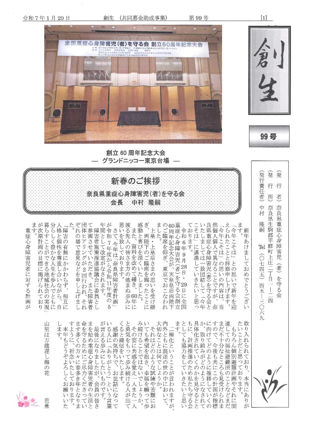 | 活動内容の補足事項 | 機関紙「創生」発刊 |