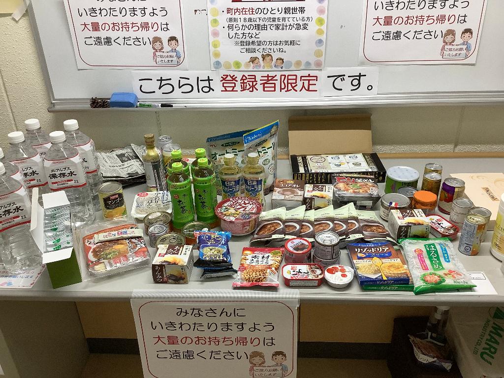 窓口に声を掛けづらい人に対しても、本会の一角に「おたがいさまコーナー」を設け、誰でも自由に食品、日用品を持ち帰ることができる仕組みをつくり、より来訪しやすい環境を整備。