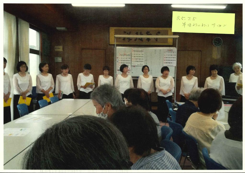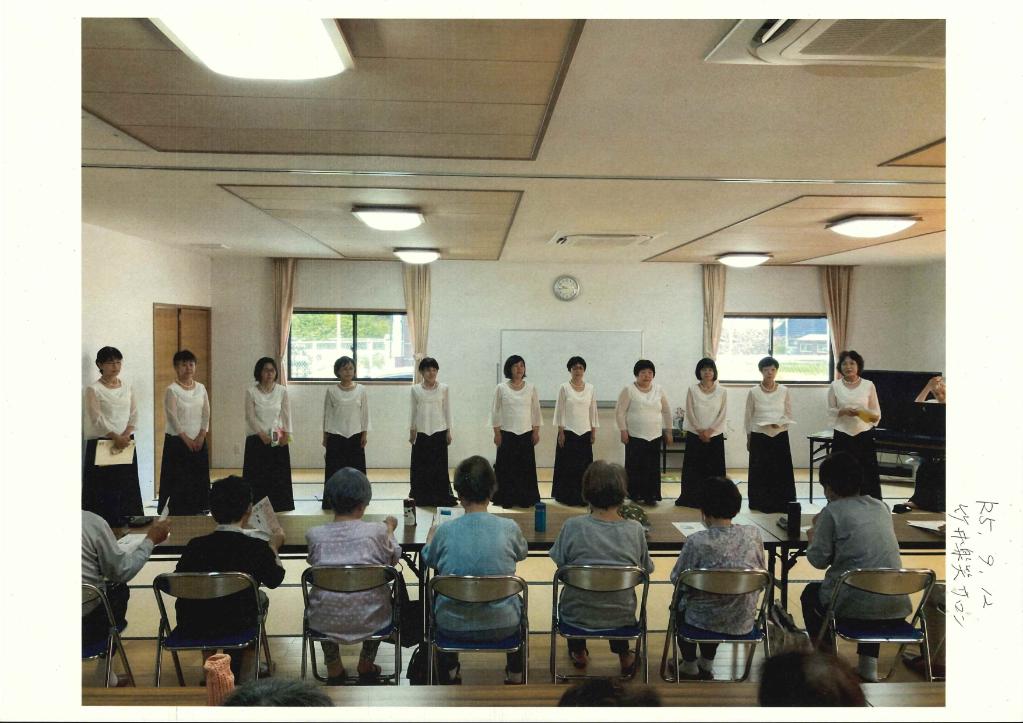 コロナウイルスが5類になり本年度はいろいろな行事が通常に戻りつつある中私達「チャーミーママ」に年度当初よりたくさんのご依頼をいただきとても喜んでおりました。いろいろな行事をしていく中でより良い歌声をお届けしたいとの思いをボイストレーナーの先生にご指導いただくことが年度終わりになってしまいましたが来年度の活動に生かされるよう長時間ご指導いただいきました。息の入れ方や声の出し方等より美しいハーモニーを来年度皆様にお届けできるよう指導していただきました。各地域で行われているサロン等に参加させていただき「きれいな歌声を聞かせてもらって良かった」とたくさんの方に言っていただきました。みなさんの声にお答えできるように今後も定期的にボイストレーニングをして美しいハーモニーをお届けできるようにがんばっていきたいと思います。
