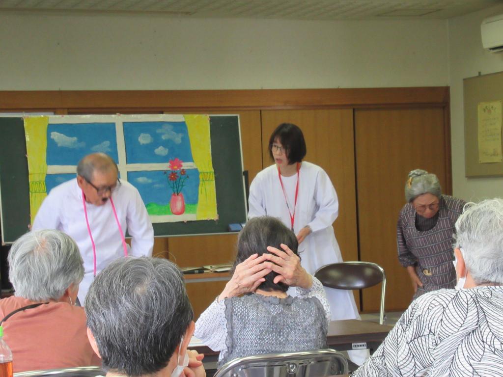 新型コロナもようやく、おさまりつつ、各地のイベントもサロン等が再開されるようになりました。コンビニ劇団にも声がかかるようになり、今年度練習に励んできた。新作のコント(ス-パー南丹リモート入社試験)と云うコントを文化祭を始め多くの会場で発表することができました。皆さん新しいコントに楽しんでもらったと思います。本年度は京都市内からも声をかけて下さって、より多くの人に笑いを届けられた。今まで以上に練習に励みコントの向上に努めます。