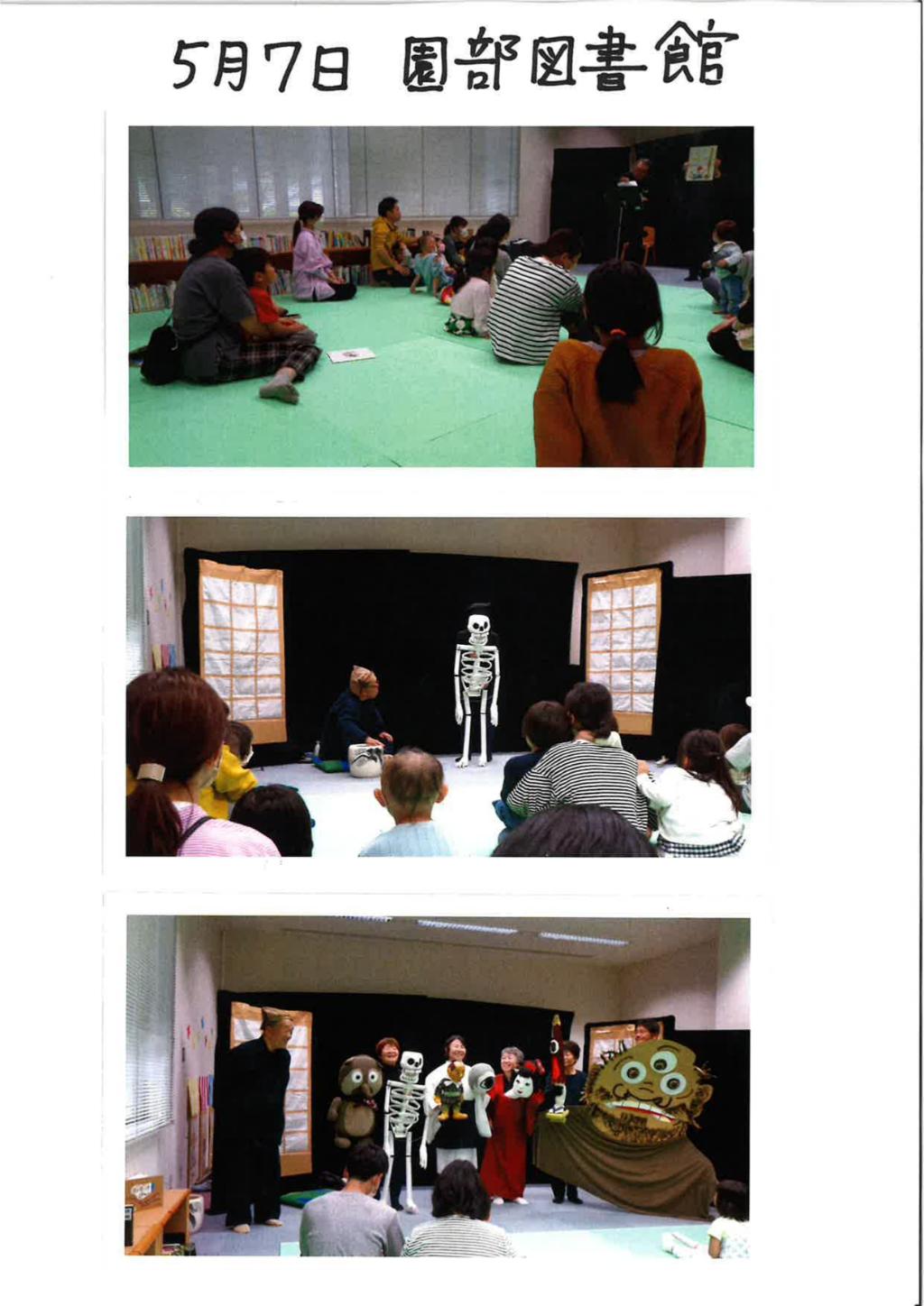 5/7園部図書館にて劇「ばけものづかい」他上演5/15平屋地区「ほっこり会」に劇「ばけものづかい」上演9/2やすらぎホーム「ひだまり祭り」に読み聞かせ・紙芝居10/2
