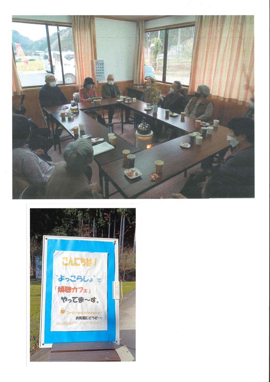 傾聴カフェを4/21、5/19、6/16,7/21、8/25、9/15、10/20、11/24、12/22、1/19、2/16、3/15の計11回実施し参加者にテーマを決めて昔の思い出を語っていただきました。参加者は延べ37名で毎回平均4名参加されました。また2件の在宅傾聴と北桑会の豊和園での傾聴活動を2名で2月から実施しています。