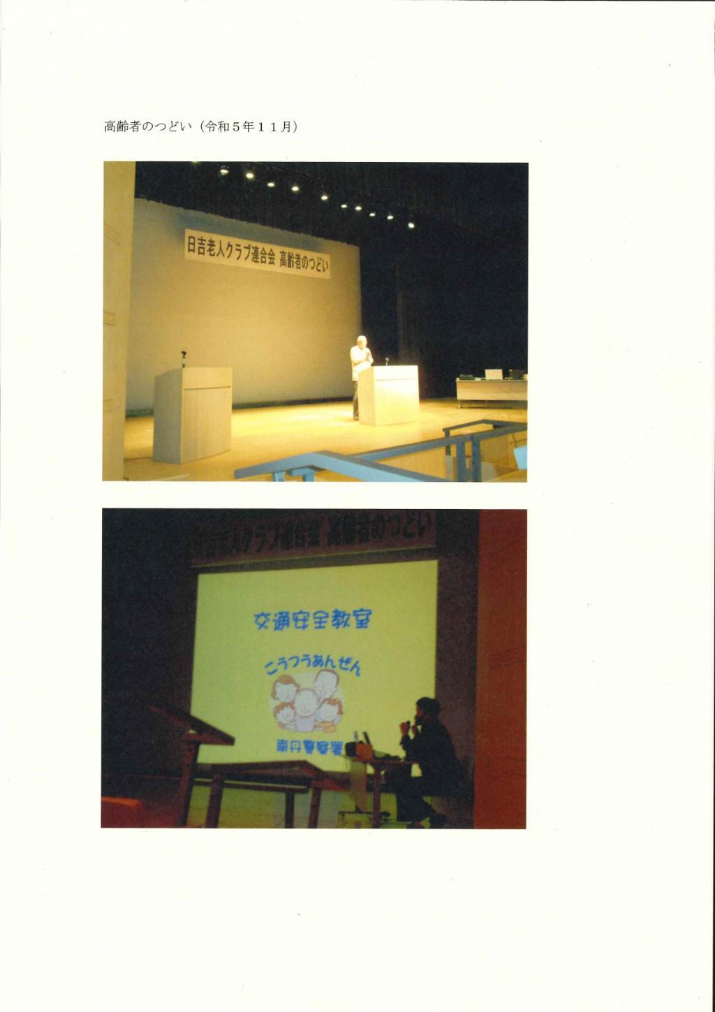 「健康・友愛・奉仕」を基本に、高齢者間の交流事業・友愛訪問事業や環境美化活動を実施した。会員の健康保持と親睦・交流を深める為、各交流大会を実施。6月19日 日吉老人クラブ連合会(24人参加)9月25日 八木老人クラブ連合会(60人参加)9月26日 日吉老人クラブ連合会(21人参加)9月25日 八木老人クラブ連合会(60人参加)10月12日 八木老人クラブ連合会(公式ワナゲ交流大会 40人参加。併せて看護学生と世代間交流を実施。)10月25日 南丹市老人クラブ連合会(グラウンドゴルフ南丹市長杯 106人参加)高齢者のつどい11月8日 園部老人クラブ連合会(116人参加 )11月8日 日吉老人クラブ連合会(40人参加)12月6日 南丹市老人クラブ連合会(会員のつどい 103人参加 市老連表彰式他)