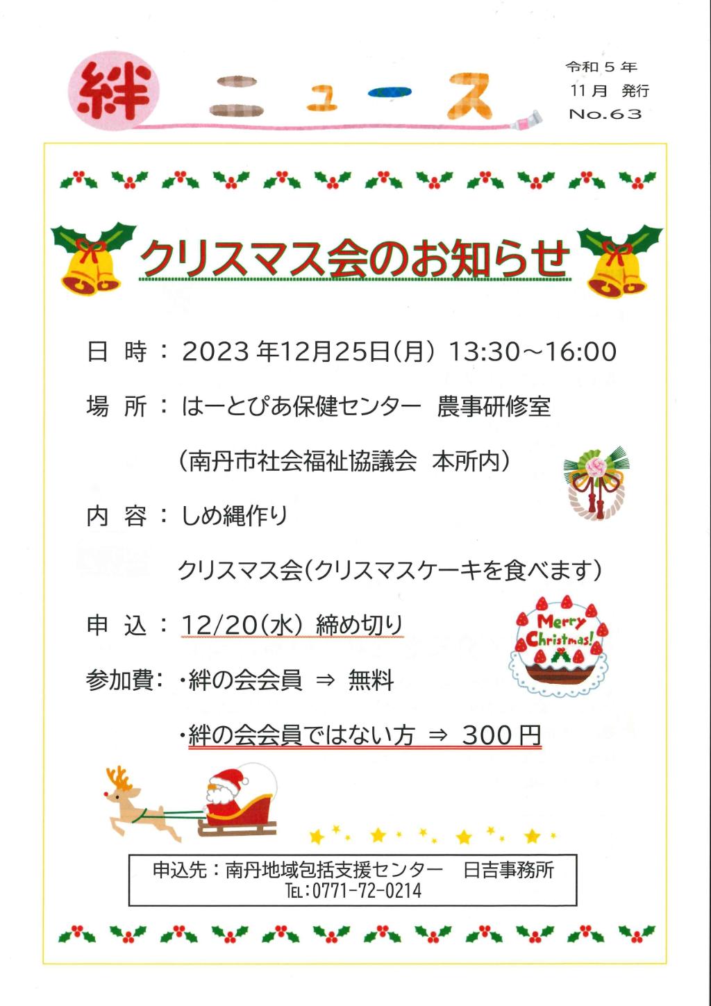 ・絆の会ニュース発行・南丹市介護者家族の会合同ニュース発行・クリスマス交流会(しめ縄作り・クリスマス会)
