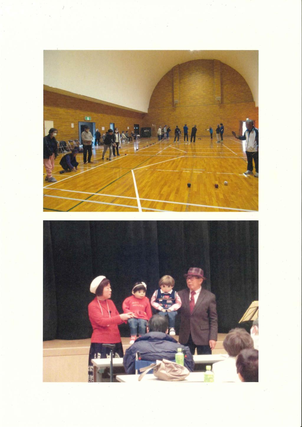 ① 第43回全京都障害者総合スポーツ大会ボッチャ大会本会では障害者スポーツを通じて、障害者の社会参加を目指し、ボッチャ大会へ積極的に参加した。また、定期的に練習を行って大会で上位入賞を目指して取り組んだ。②南丹市身体障害者福祉会「スポーツ大会」午前く団体競技> ボッチャください。) 午後く個人競技> グラウンド・ゴルフ、輪投げ開会式後、各支部ごとにチームを編成し、体育館にてボッチャ大会を開催。昼食交流後、午後からは運動場へ移動し、グラウンド・ゴルフと輪投げで交流と親睦を図った。③南丹市身体障害者福祉会福祉大会午前各種表彰、体験発表午後アトラクション(八木支部:腹話術)関係機関の協力により、「障がい者の社会参加をめざして」のスローガンのもと、盛大に福祉大会が開催できた。心に響く体験発表に感動を受け、午後からは腹話術があり、楽しいひと時となりました。