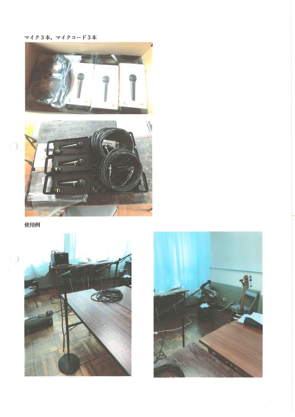 演奏活動に必要な機械を購入いたしました。購入機材(マイク及びマイクケーブル各3本)毎月1回の練習会及び社協ボランティアとしての演奏活動に利用しています。機械不足が解消されて練習環境が整備されました。演奏会場の設営にも役立っております。これからも機械を利用して活発に活動していきたいと思います。