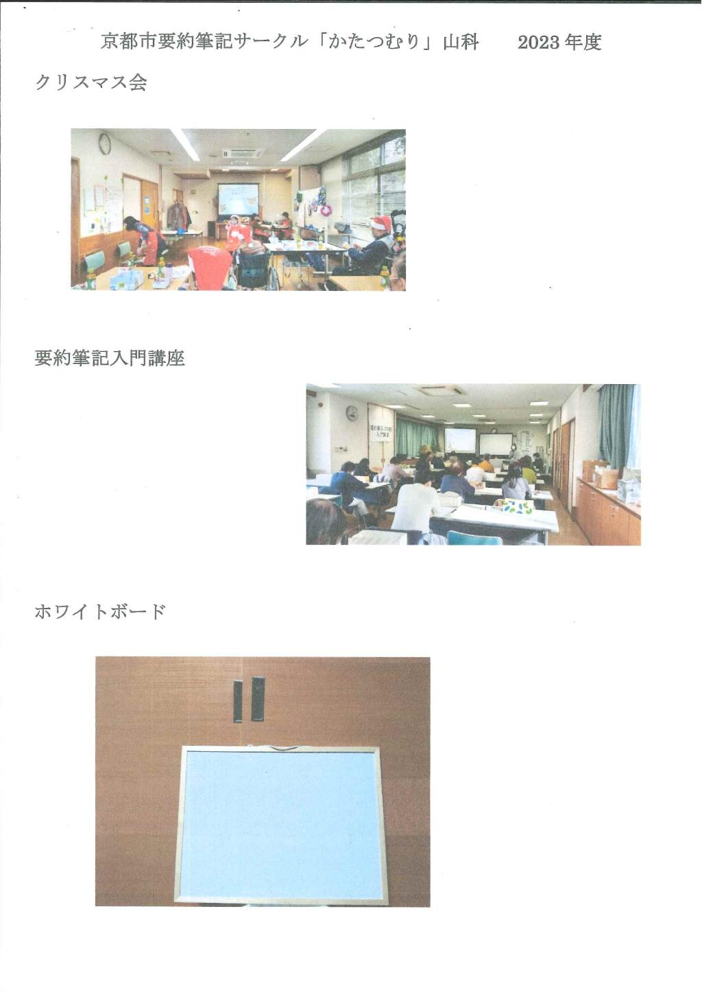 難聴者協会山科支部秋のレクリエーション、つどい、手話、要約筆記ボランティア基礎講座、難聴者協会山科支部合同クリスマス会、要約筆記入門講座などを開催し、交流、啓発を行っています。