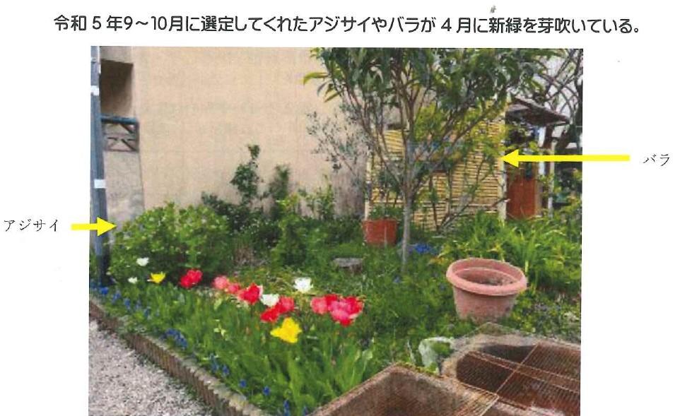 5.園内の果樹(柿、栗、ゆすら梅、ゆず)や花(バラ、フジ、アジサイ等)の剪定。
