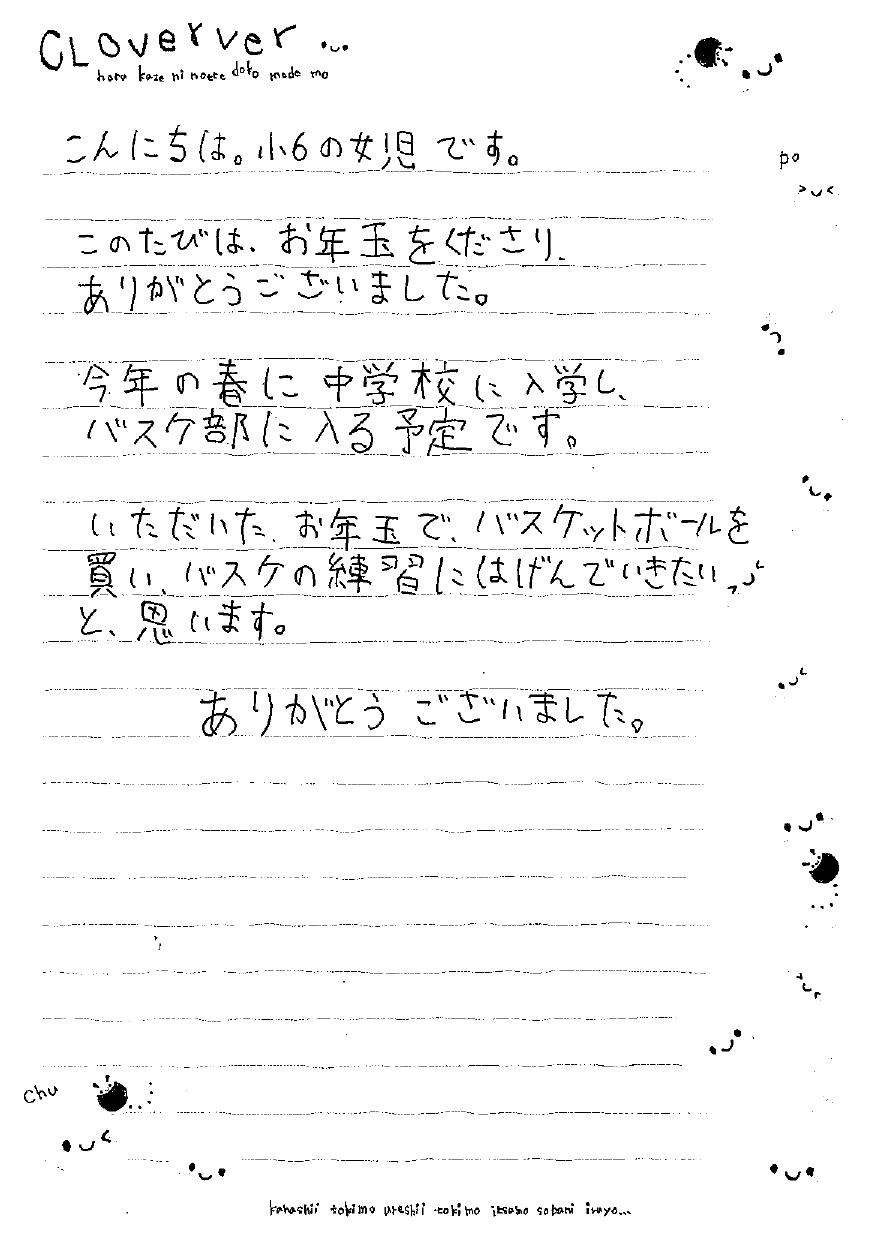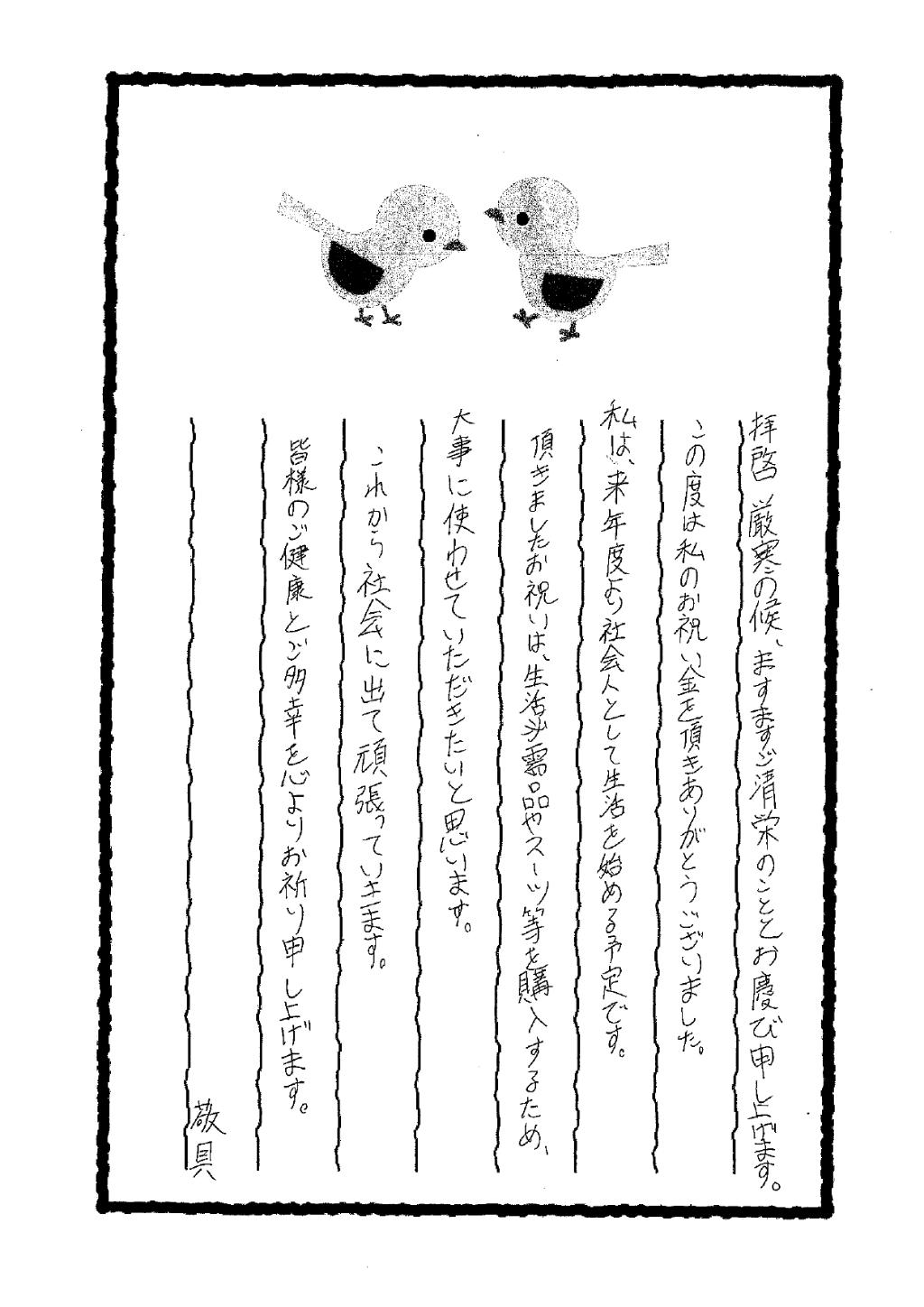 お年玉、就職・進学準備金に児童養護施設(いわき育英舎)の子どもたちから「大事に使います」と大変喜ばれました。