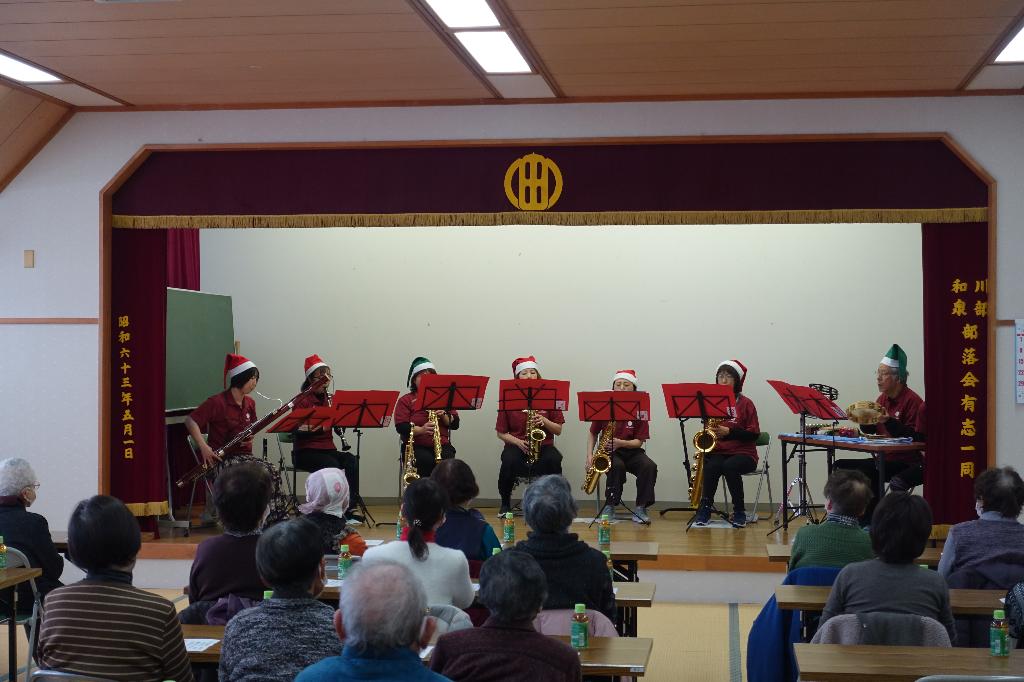 村内の一人暮らし高齢者を対象にクリスマス会会食として実施している。今回は、弘前市吹奏楽団の演奏とお正月飾りの制作を行う。また、参加者同士の交流の場とする。