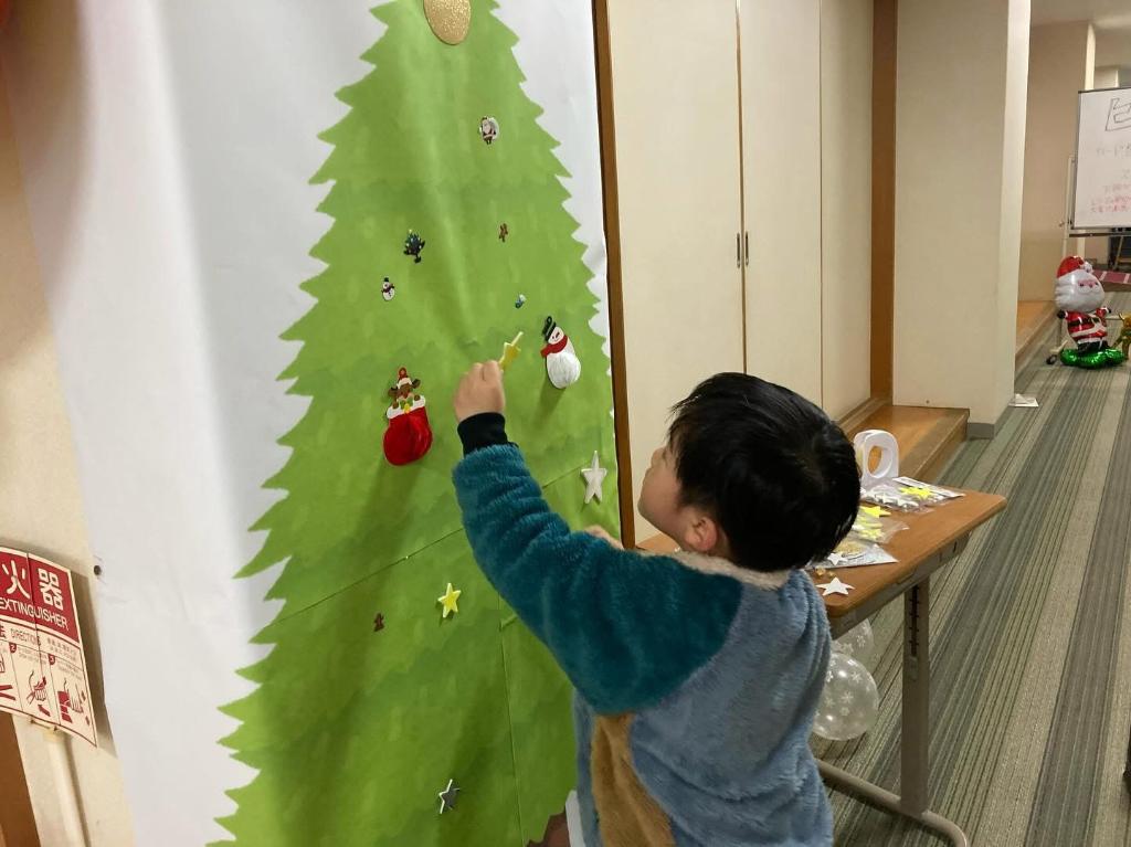 クリスマスツリーの装飾。年末ビンゴ大会を実施
