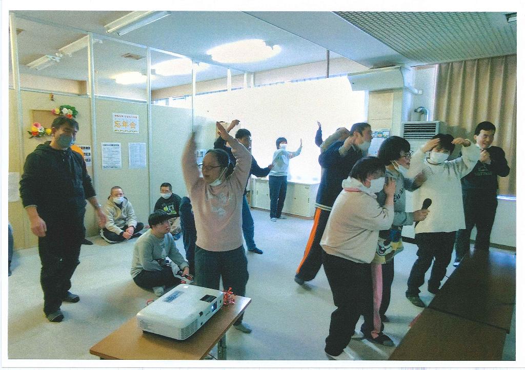 所員と家族、ボランティアの連携を深めるために行っている年忘れカラオケ大会