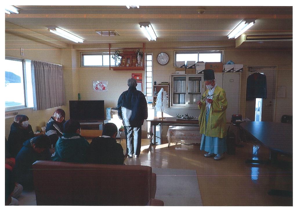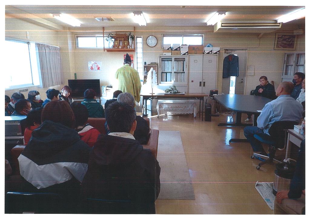 ②新年会の祈祷⇒「きてみいや」にて神主による新年度の健康・無事等を祈祷してもらう。