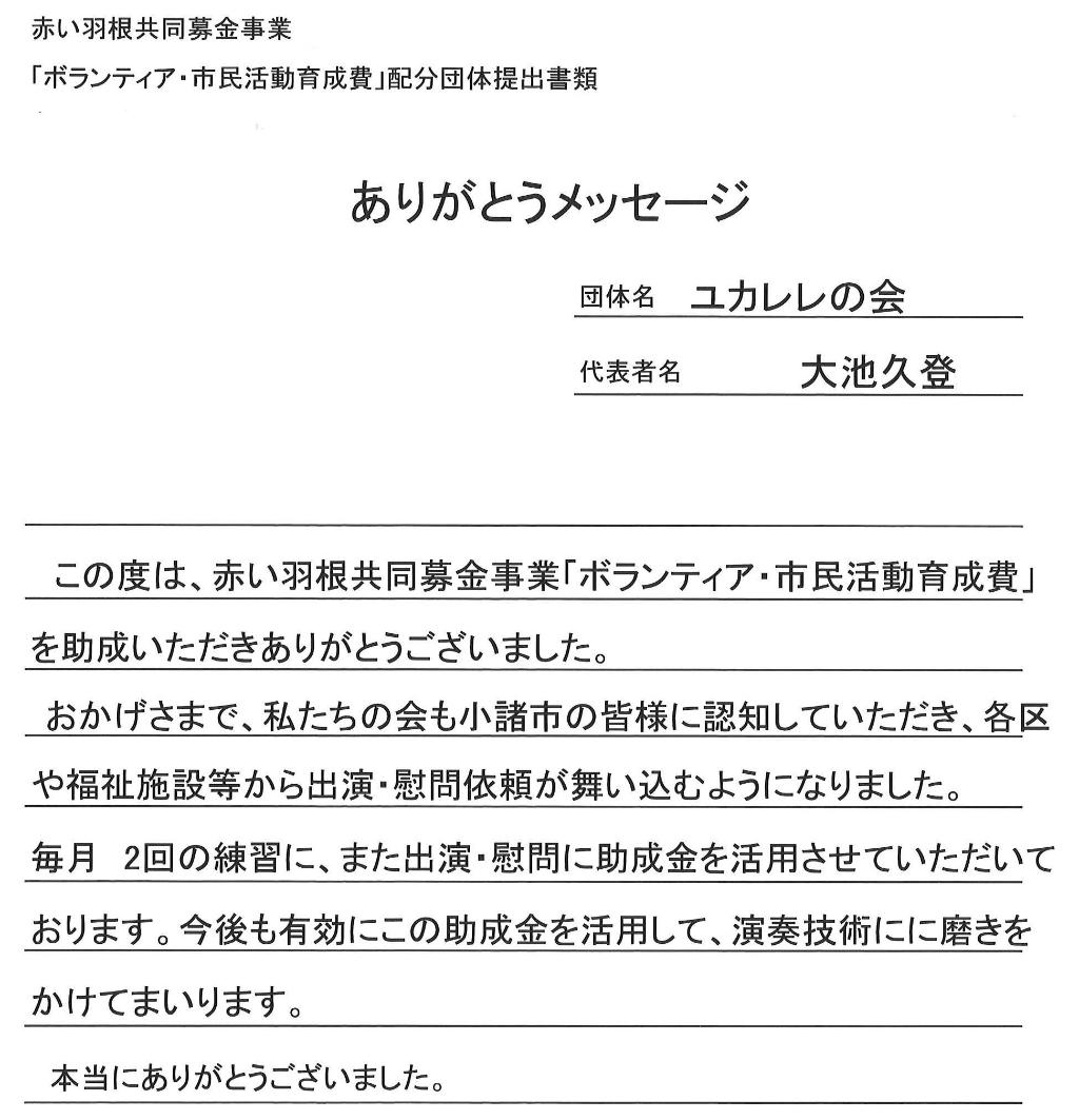 | 団体名 | ユカレレの会 |