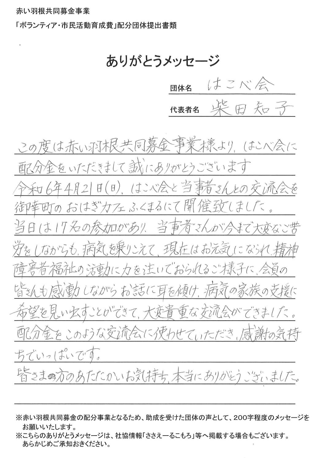 | 募金の種類 | 赤い羽根共同募金(地域) |