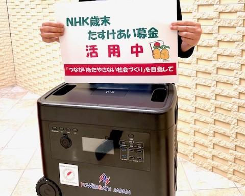 この度、NHK歳末たすけあい助成のおかげで「防災用ポータブル蓄電池」を購入させていただきました。