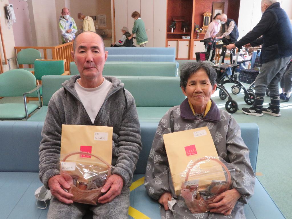 「新しいタオルは触り心地良かった」「せっかく貰ったので今日から使いたい」「いつもと違うお菓子が食べれて嬉しい」等々、利用者様が喜んでいる事が職員にも伝わって来ました。