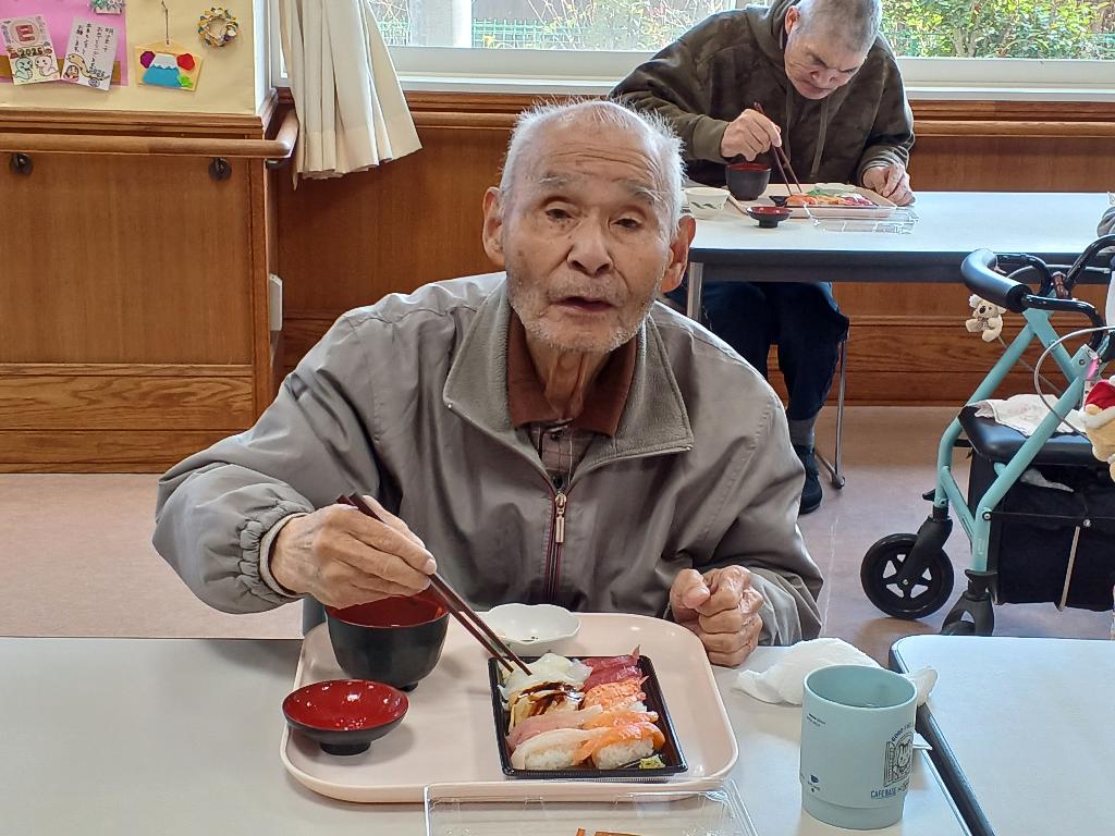 この度は、NHK歳末たすけあいの助成金を頂戴いたしまして、誠にありがとうございました。早速、頂いた助成金を活用し御要望多いお寿司を楽しんで頂く食事会を中心に、身の回りを清潔に保って頂くための日常品を用意させて頂き幸せな時間を共有する事が出来ました。本年も皆様の明るい表情や笑顔と共に元気に過ごしていきたいと思います。
