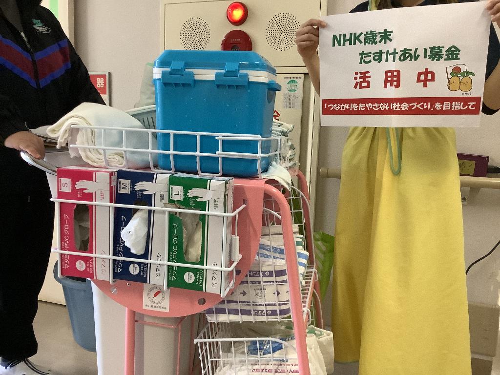 排泄交換用キットを運ぶカートは、毎日使用する必需品です。この度、3台を助成していただきました。