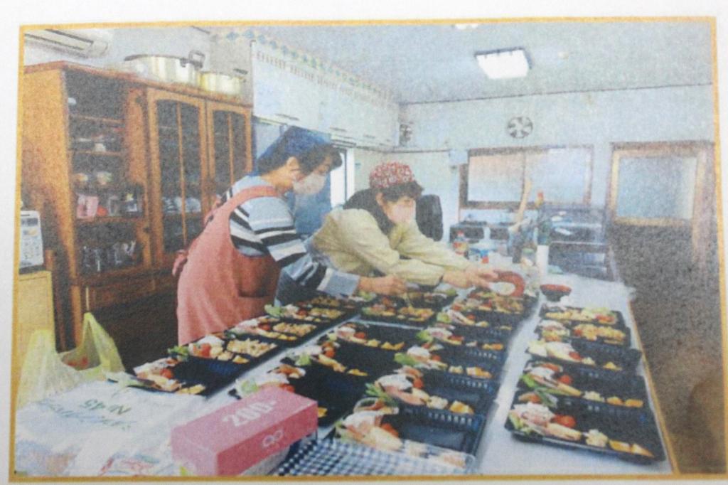地域のボランティアの皆さんにより、ひとり暮らし高齢者を招待され、ボランティアの皆さんによるハーモニカ演奏、また手作りのお弁当を振舞われて、みなさん、おしゃべりしながら楽しく過ごされたようです。