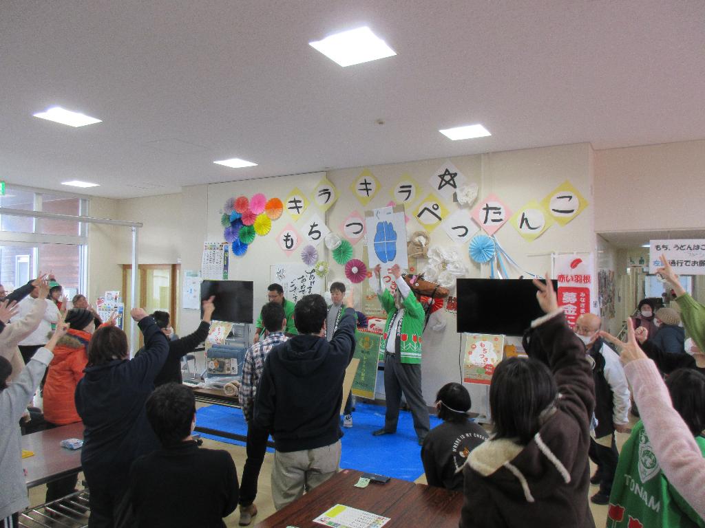 となみ青年会議所や南砺福野高校福祉科の協力のもと、季節行事として「キラキラ☆もちつきぺったんこ」を開催し、行事の参加者につきたての3種類の餅やかきあげうどん、カットフルーツを地域の方に無料で振舞った。また、南砺市社会福祉協議会の夢を叶えるサポーター事業を活用し、温かい麦茶やホットコーヒーの提供をしてもらい、喫茶ブースを構えた。ピアサポートあいの登録者やさつき荘利用者を中心に子供から大人まで楽しめる行事として企画・実施した。