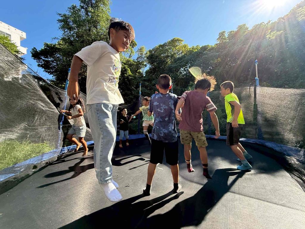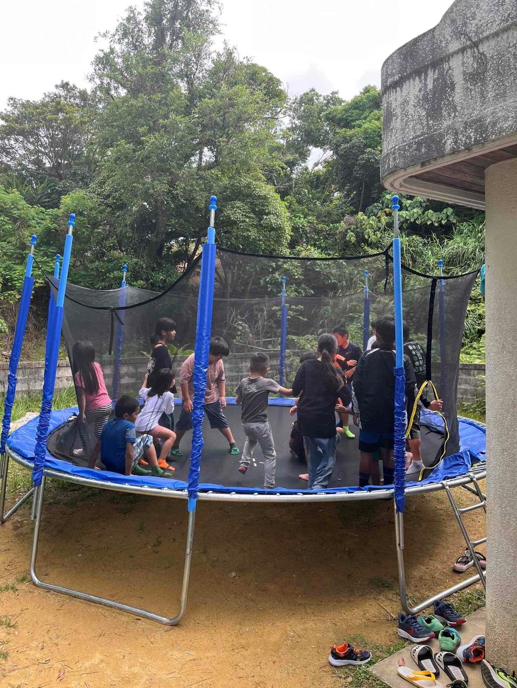 子ども達の日々の活動を行う中でトランポリンを整備。体づくりや気分転換に役立っており、とても喜んで利用しています。