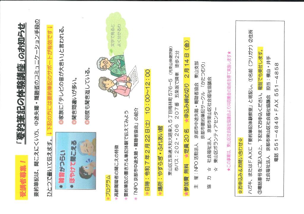 | 団体名 | 京都市難聴者協会東山支部 |
